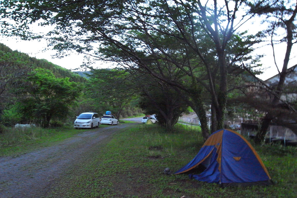 神社入口のお店に利用料200円を払って、川岸のキャンプサイトへ。